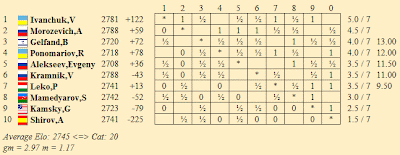 Nå er Ivanchuk alene i tet med 5 poeng, halvpoenget foran Morozevich på 4½. Det er også verdt å merke seg at Vladimir Kramnik, som i oktober skal ut i VM-match mot Anand, har en heller laber turnering med bare 50 % score.