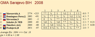 Alexander Morozevich vinner og vinner. Med sin femte seier i superturneringen i Sarajevo, Bosnia, denne gang over Borki Predojevic, er han oppe som nummer 2 på den uoffisielle verdensrankingen foran landsmann Vladimir Kramnik. Dette gir russeren en astronomisk ratingprestasjon på 2985. Spørsmålet nå er ikke om det blir seier i turneringen, men kan han svare Ivanchuks 8 av 10 og ratingprestasjon på 2977 fra MTel Masters i forrige uke?
